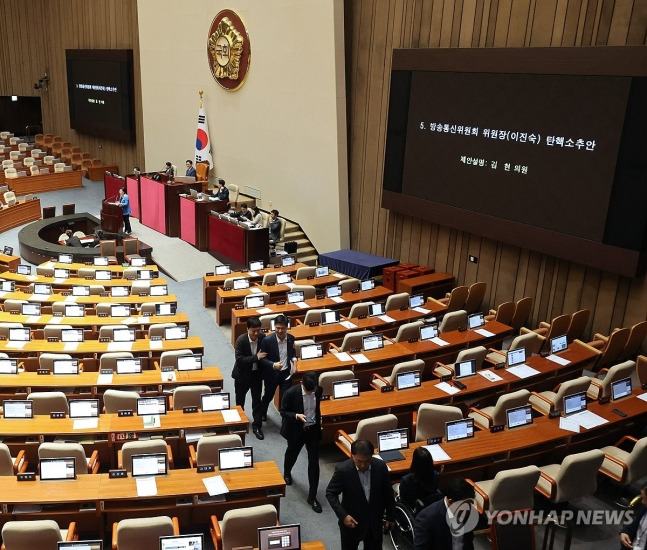 이진숙 방통위원장 탄핵안 상정...여당 퇴장