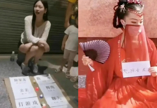 중국 여성들이 대도시 한복판에서 노점 형태로 뽀뽀나 포옹, 영화 보기, 데이트 등 ‘여자친구 대행 서비스’를 하고 있어 소셜미디어(SNS) 등에서 논란이 되고 있다.
