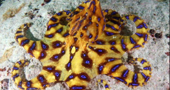 영상 속 문어의 정체는 청산가리보다 10배 이상 강한 독성을 품고 있다고 알려진 ‘파란고리문어’(Hapalochlaena)다.